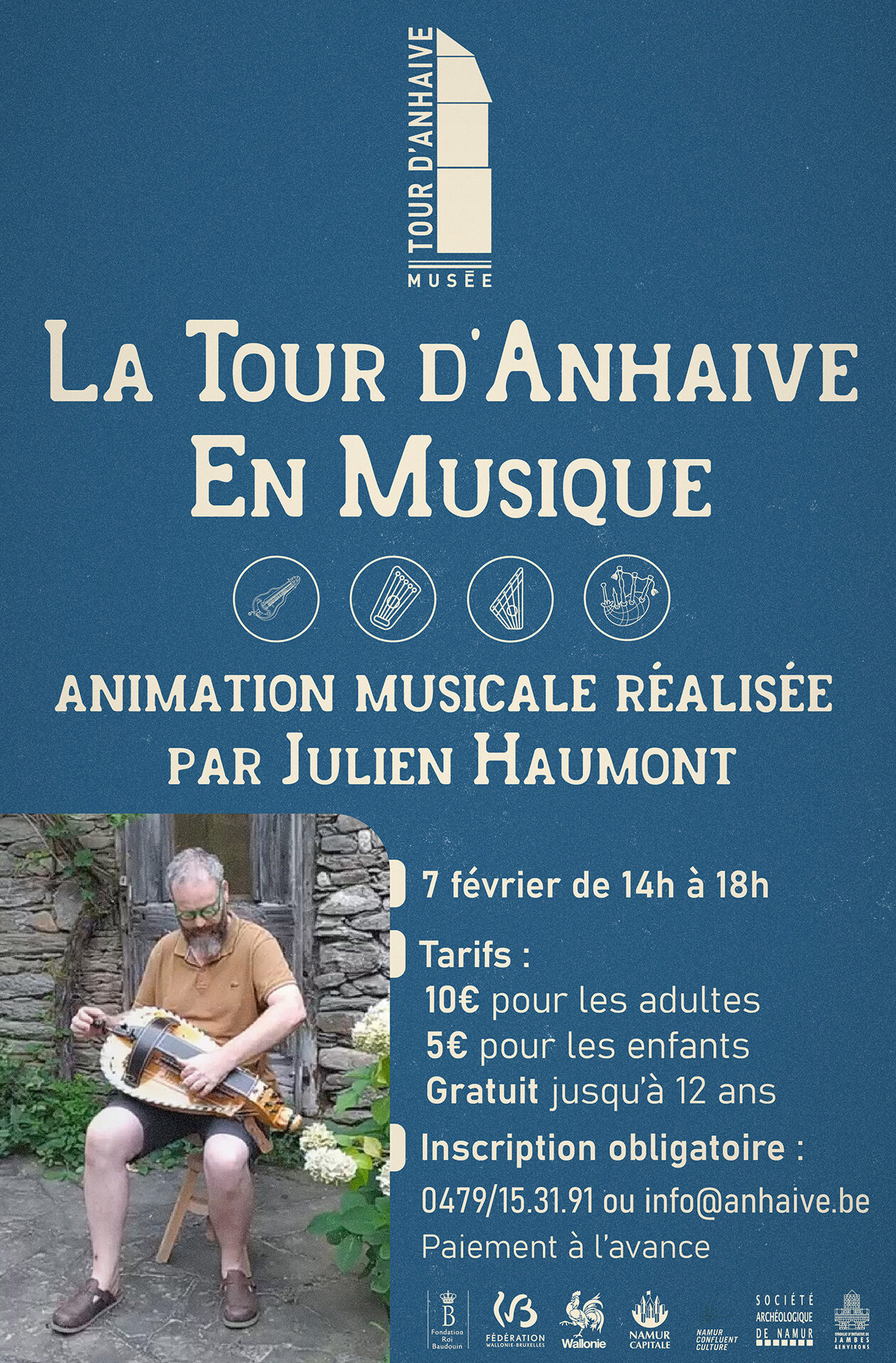 La Tour d’Anhaive vibrera aux rythmes de musiques anciennes ce 7 février prochain. Venez nombreuses et nombreux parcourir le Musée aux sons d’instruments oubliés joués par le musicien Julien Haumont.